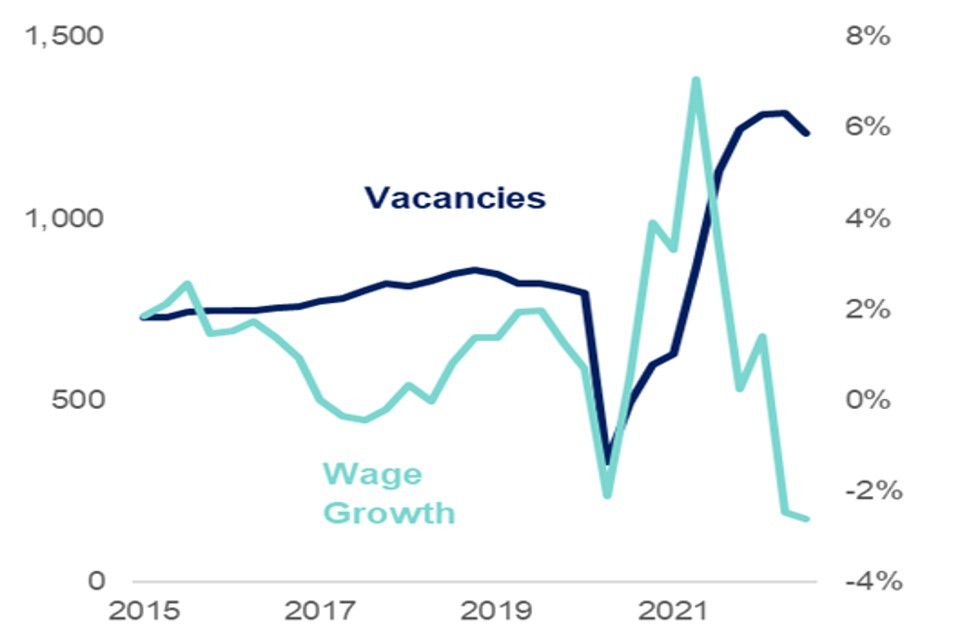 Figure 2.4: Vacancies and real wage growth, 2015-2022
