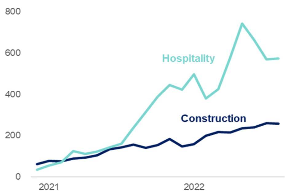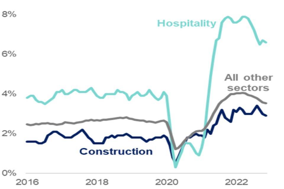 Figure 3.5: Vacancy rates in construction and hospitality, 2016-2022