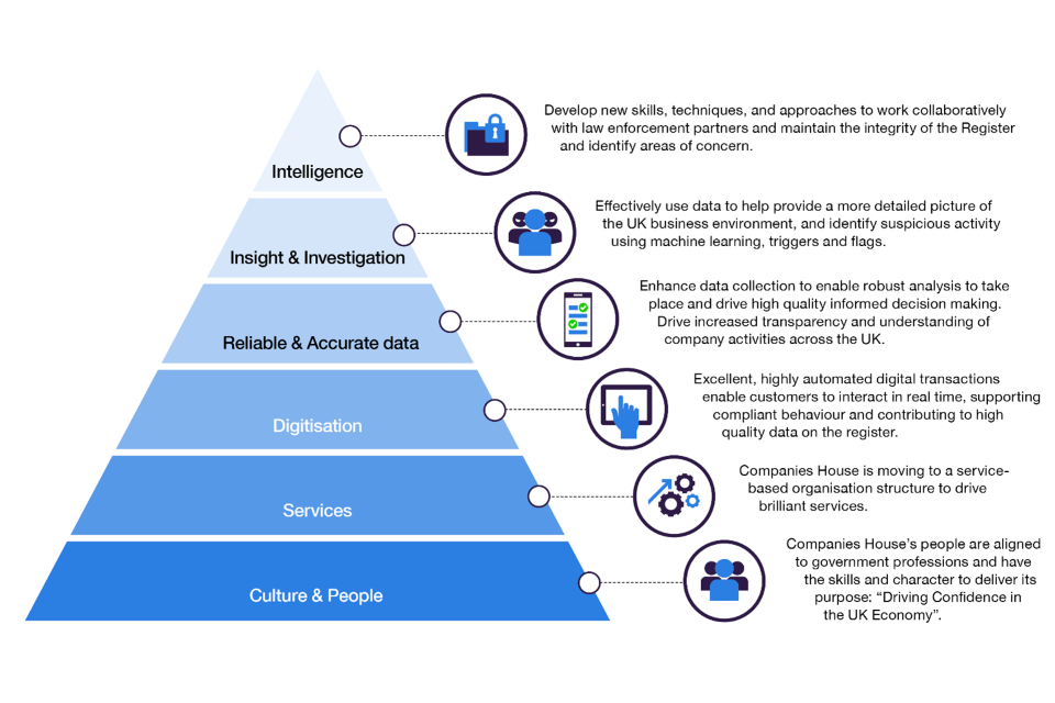 6. Companies House has a strong track record for customer service and is well regarded worldwide. However, the legal framework that it operates in needs updating to meet the demands of a thriving and increasingly digitally-based 21st century economy. More fundamentally, the government would like to see Companies House play an expanded role so will change its statutory role from being a largely passive recipient of information to a much more active gatekeeper over company creation and custodian of more reliable data.