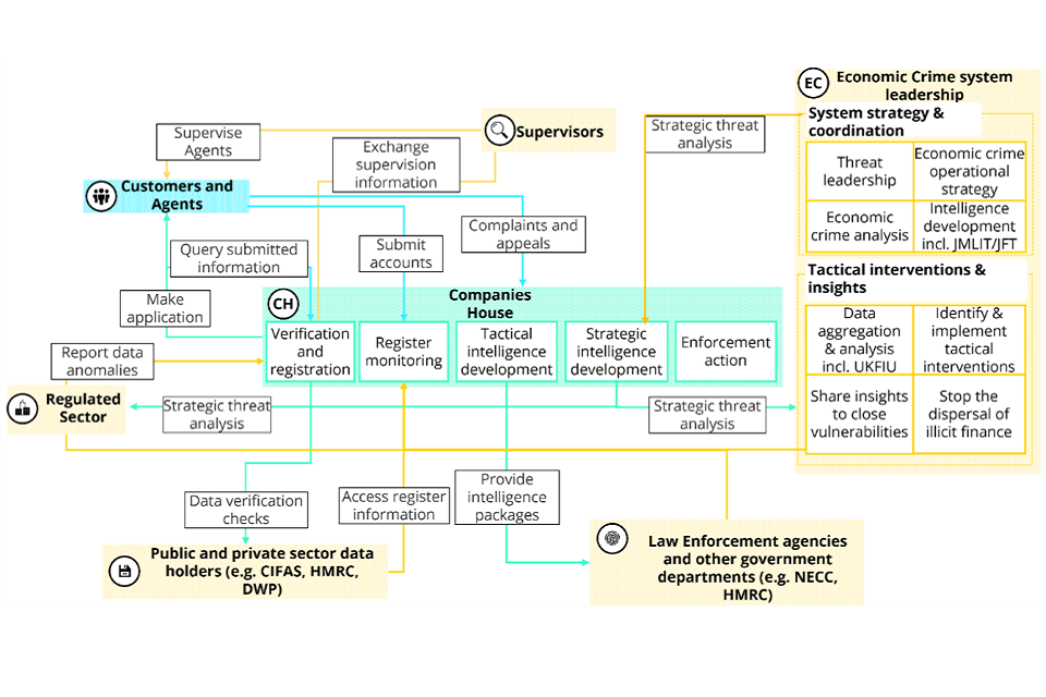 19. The combination of legislative and operational reform of Companies House will help ensure the UK is the best place to start and grow a business, and that companies on the UK register are run responsibly, transparently and with accountability. These reforms are a key part of the government’s Economic Crime Plan, and they complement a number of related measures the government has also committed to introducing soon. [footnote 9]