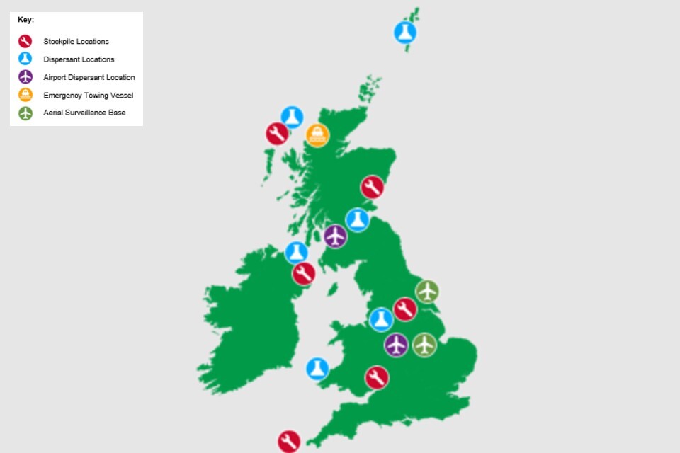 The Maritime and Coastguard Agency’s (MCA) counter pollution equipment and dispersant are distributed across several strategic locations around the UK.