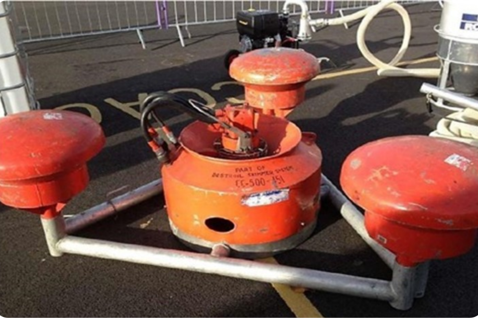 - Dispersant is discharged via an electrical pump at a rate of 250 gallons per minute ejected from the pod via a spray boom at the rear of the pod.