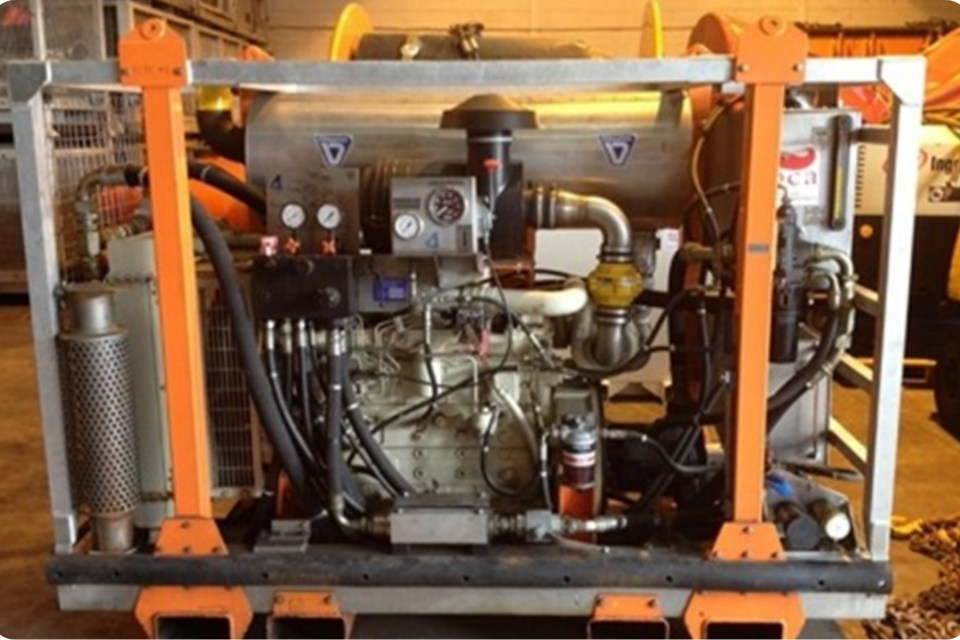 There are three different types of hydraulically or mechanically started diesel engines which drive hydraulic pumps, all are self-contained with hydraulic oil and fuel oil tanks, mounted on a skid for transportation. These units have no electrical components and insulated exhausts and are therefore are safe to use in hazardous environments. Their primary function is to be used in conjunction with a back-up unit, and cargo transfer pumps, but can be used to power other large hydraulically driven equipment such as large skimmers.