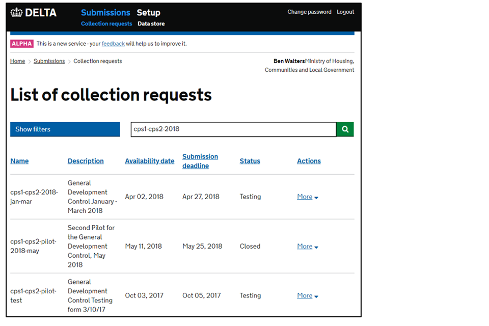 You will have received a notification with the exact name of the form awaiting completion and can use this as your reference. You can also sort by the most recently added form or search using the search field. If you are unsure, please contact planning.data.collection@levellingup.gov.uk.
