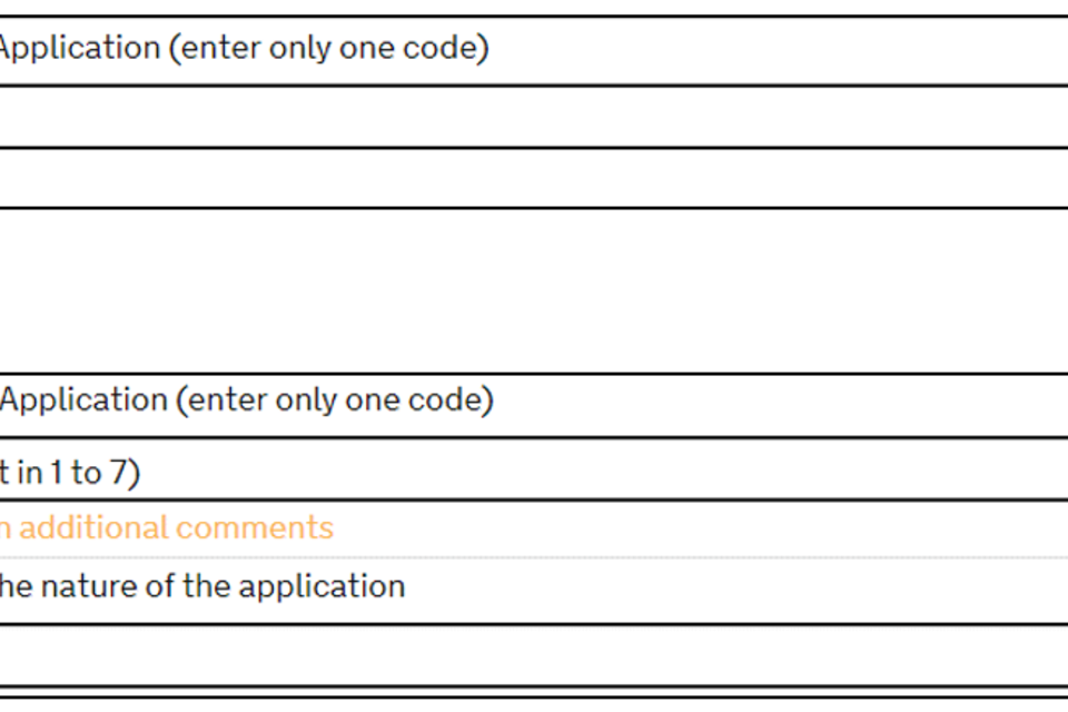 | Nature of application | Code |