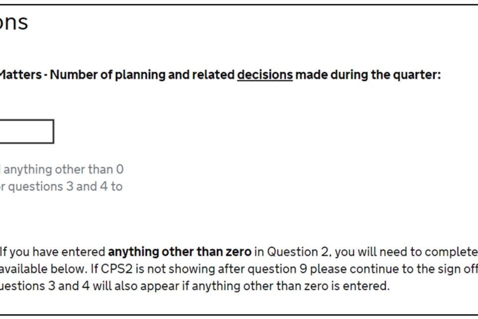 | CPS1 Q5 (Regulation 3 and 4 decisions where these relate to county matters only) | See note below | See note below |