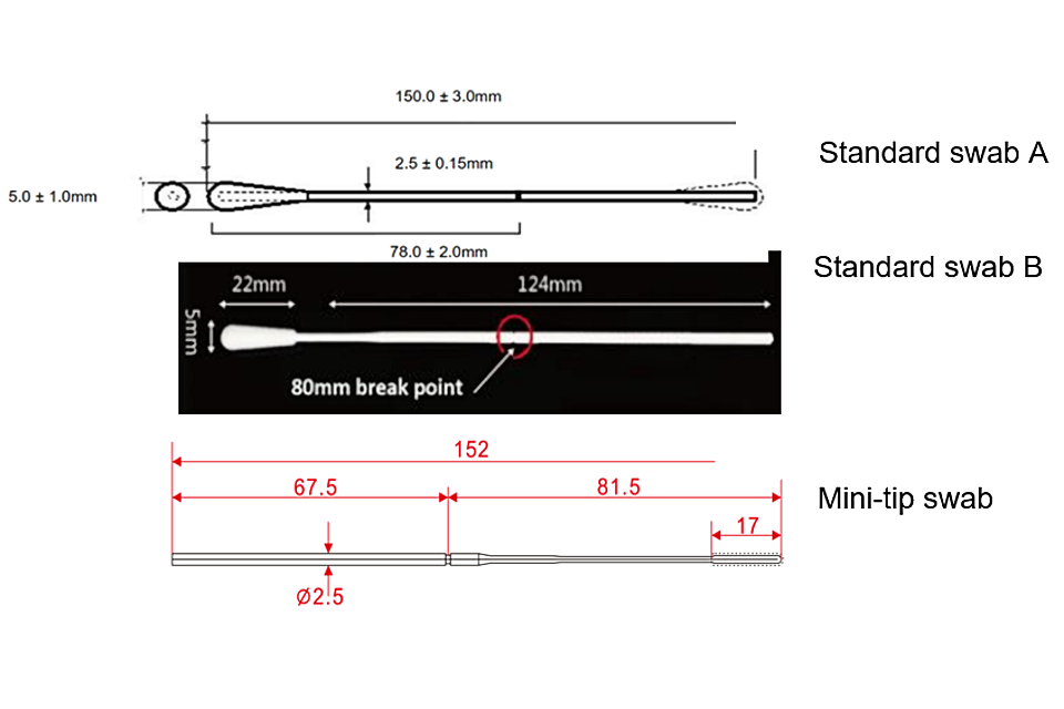 | Mini-tip swab | 81.5mm | 152mm | 3mm | Flock (Nylon) |
