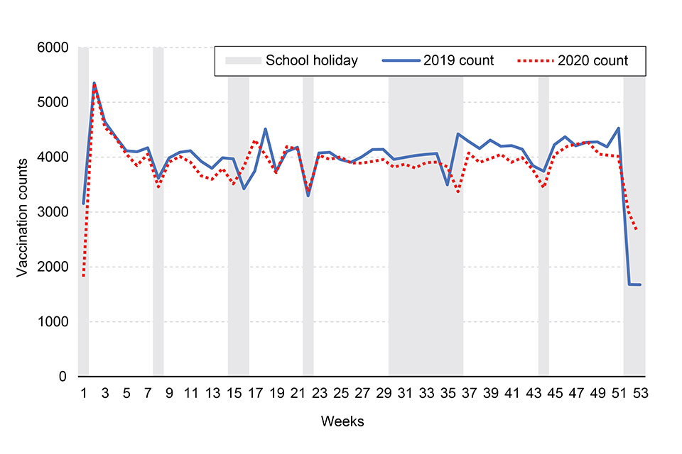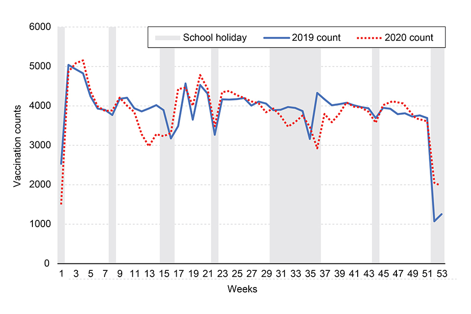 Impact of COVID-19 on childhood vaccination counts up to week 53, 2020