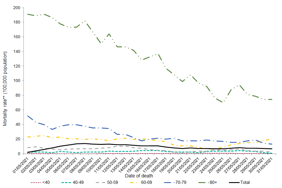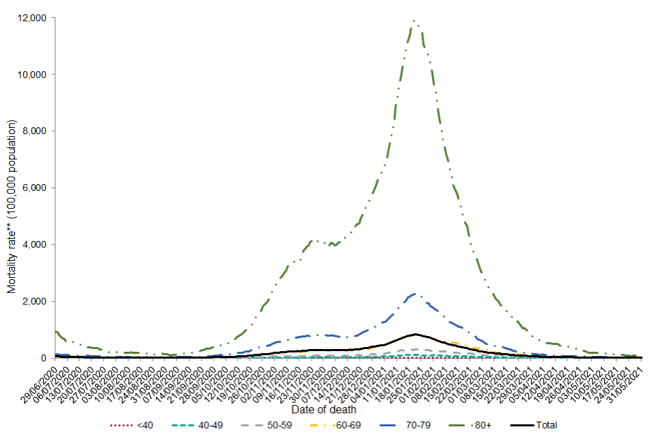 Since 29 June 2020, the mortality rate was highest among those aged over 80 (annualised rate of 2,060.0 per 100,000 population per year).