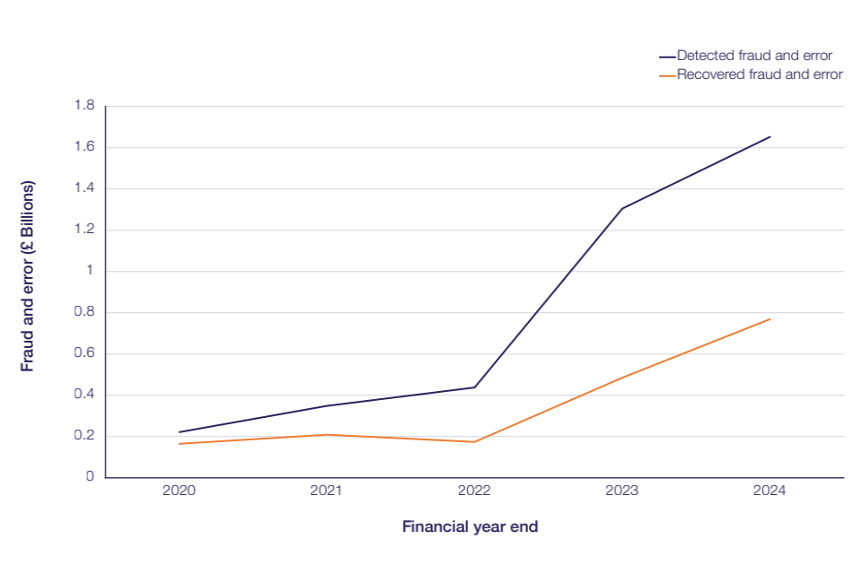 - £1.7bn of detected fraud and error reported to the PSFA in 2023/24.