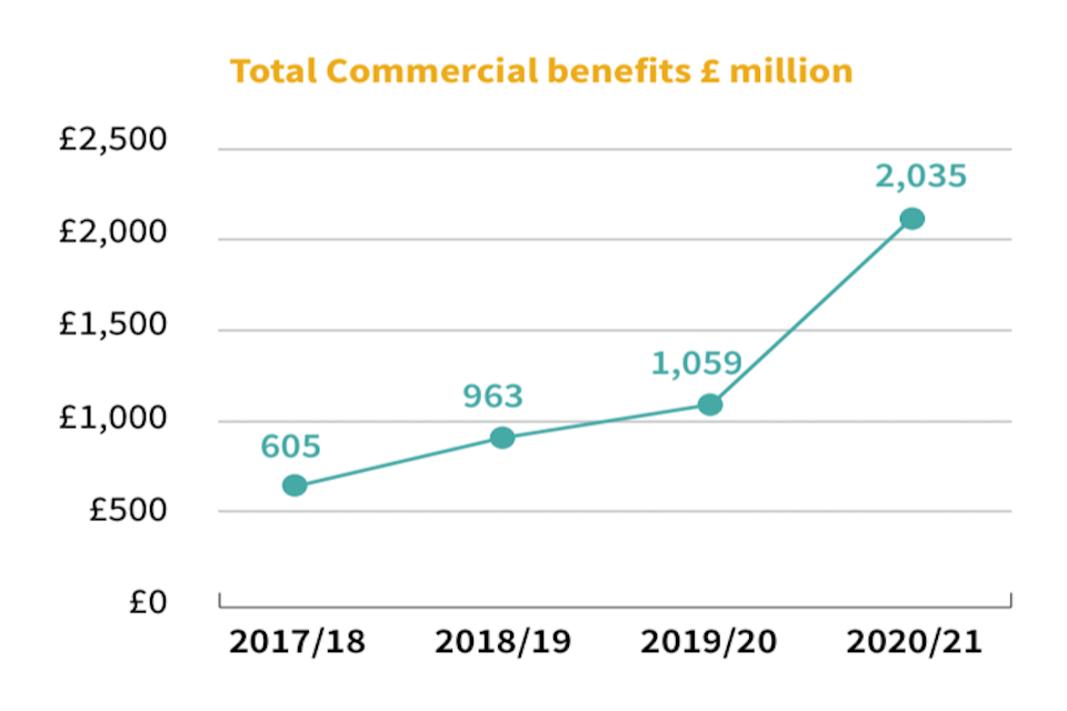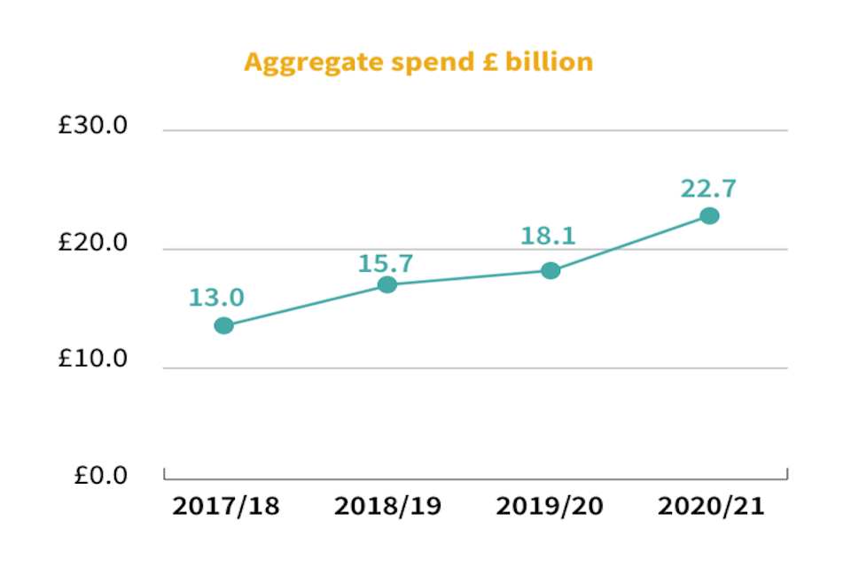 £22.71 billion of public sector spend was channelled through our commercial agreements, an increase of £4.6 billion from the year before