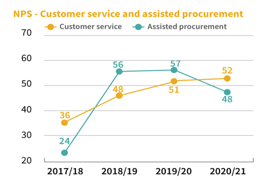 our net promoter scores for customer satisfaction over the year were +52 for customer service and +48 for assisted procurement