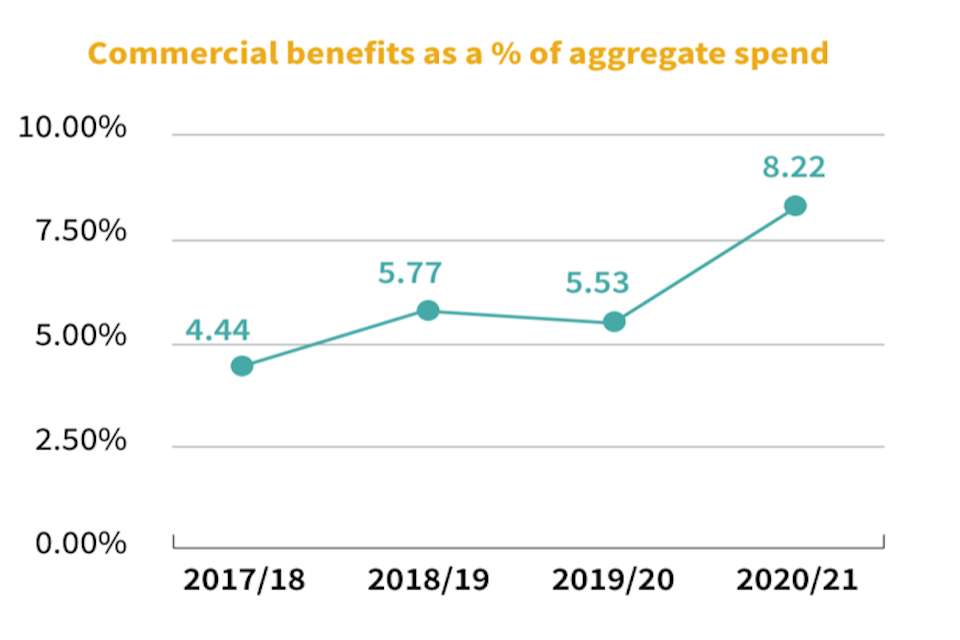 a. ‘Spend benefits’ are based on sampling all spend through a commercial agreement and calculating average benefit for all the customer population using the agreement compared to current comparator market prices