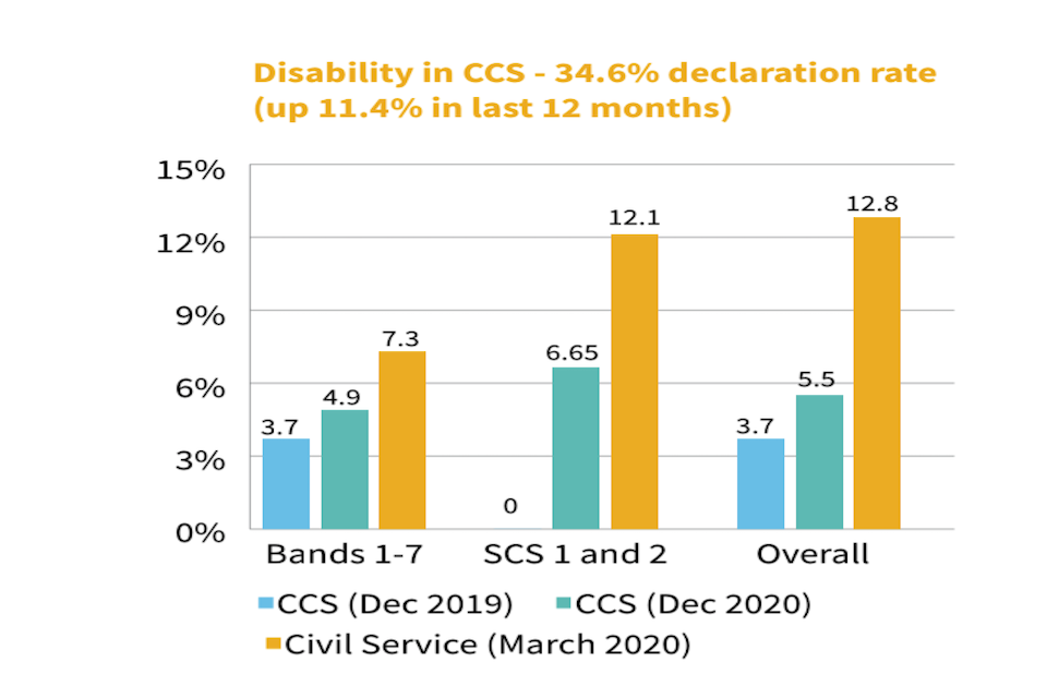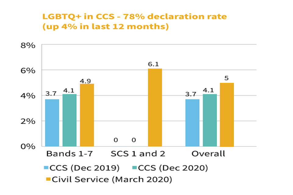 our employee engagement index, as measured by the civil service people survey, has increased to 72% in 2020 maintaining top quartile performance