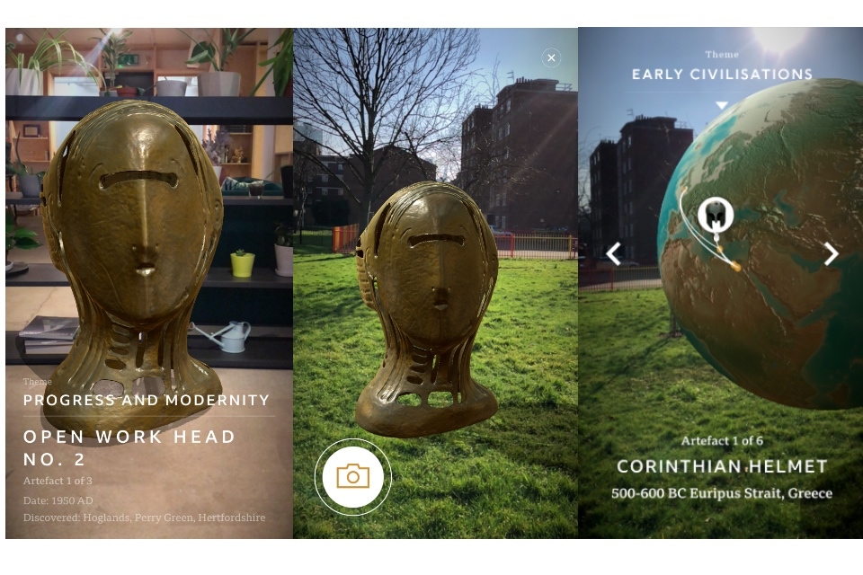The BBC launched its first augmented reality app for the festival, Civilisations AR. Developed by BBC Research & Development, BBC Arts and Nexus Studios, the app features more than 30 fascinating artefacts from museums across the UK that have been digitally scanned and made available to view in 3D as part of a new virtual exhibition. For the majority of institutions it was also a steep learning curve, supported by the BBC, to discover how to digitally capture items for augmented reality.At the heart of the Civilisations AR experience is a core ‘magic spotlight’ feature, which allows users to uncover annotations, audio and imagery that enrich the story of each exhibit. An X-ray function lets users see through or inside an object, while a restoration feature can be used to rub through the layers of history. Users can browse the exhibition geographically, using an AR globe, or via the themes of the series.The AR App, released on both iOS and Android, has had more than 725,000 downloads to date, with high appreciation scores from audiences.