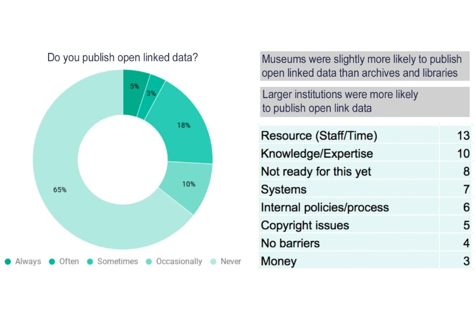 Pie chart showing the percentage of cultural organisations which were publishing open linked data