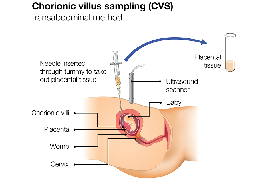If you have a CVS, we take a tiny sample of tissue from the placenta (placental tissue) for testing. The sample contains some of your baby’s cells which contain genetic information (DNA).