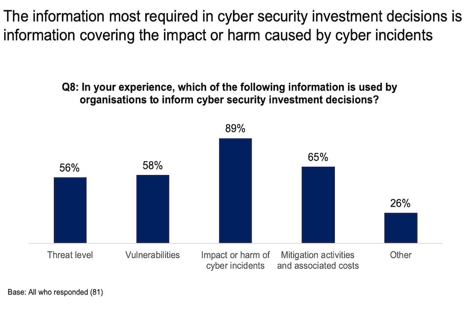 - A key theme in submissions to the Call for Evidence was that organisations find it difficult to demonstrate a return on investment as they are unable to quantify the level of cyber risk and therefore cannot develop a business case that justifies investment in cyber risk mitigations.