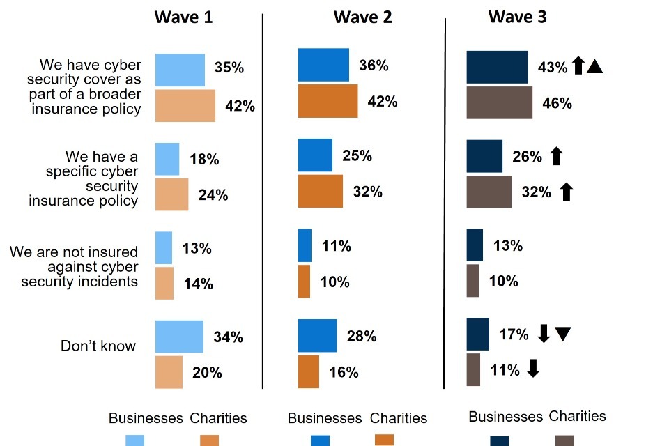 However, it is vital to note that there have been some areas of change. For example, the prevalence of cyber security insurance has increased across the three waves.