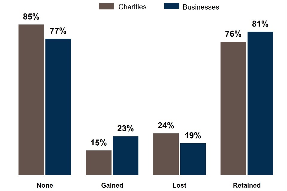 - Businesses are more likely than charities to retain their adherence to accreditations or standards but no more likely to take up certifications.