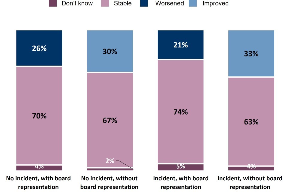 - The experience of cyber security incidents again appears to trigger adoption of board activities and/or a lower rate of negative change in board engagement, although only for a minority of organisations that experience such incidents.