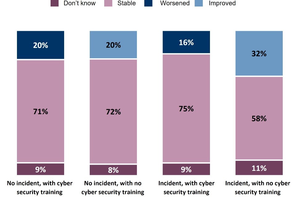 There is some evidence supporting the hypothesis that experiencing a cyber security incident acts as a trigger for improving resilience. However, this is not true for all organisations, as some experience an incident and show no change in their resilience or become less resilient. More needs to be known about the context and other factors influencing protective behaviours alongside experience of cyber incidents.