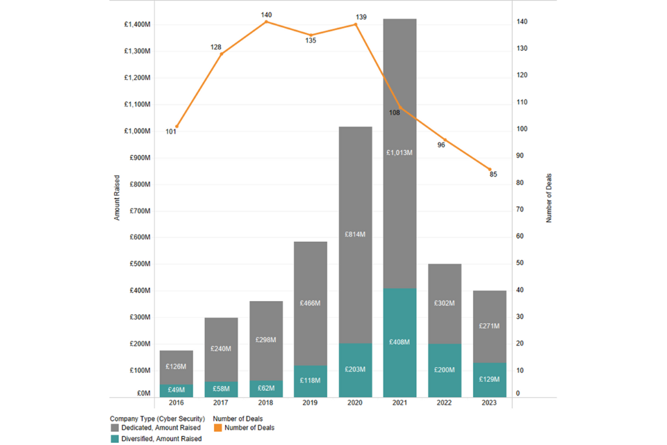 In 2023, £271 million has been raised across 71 deals within dedicated cyber security firms.