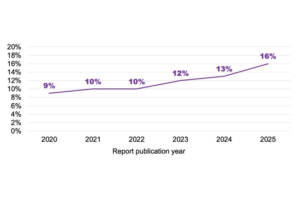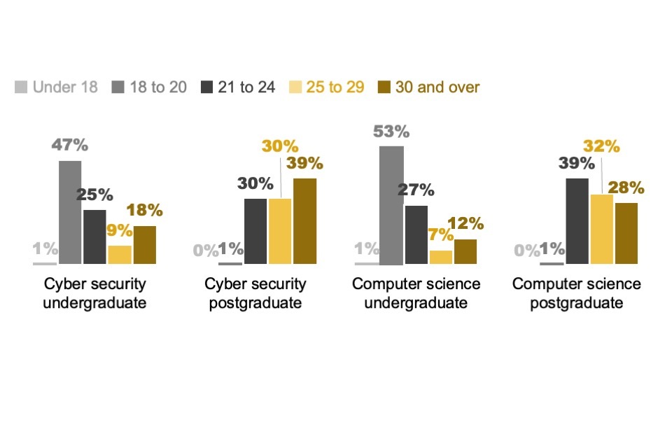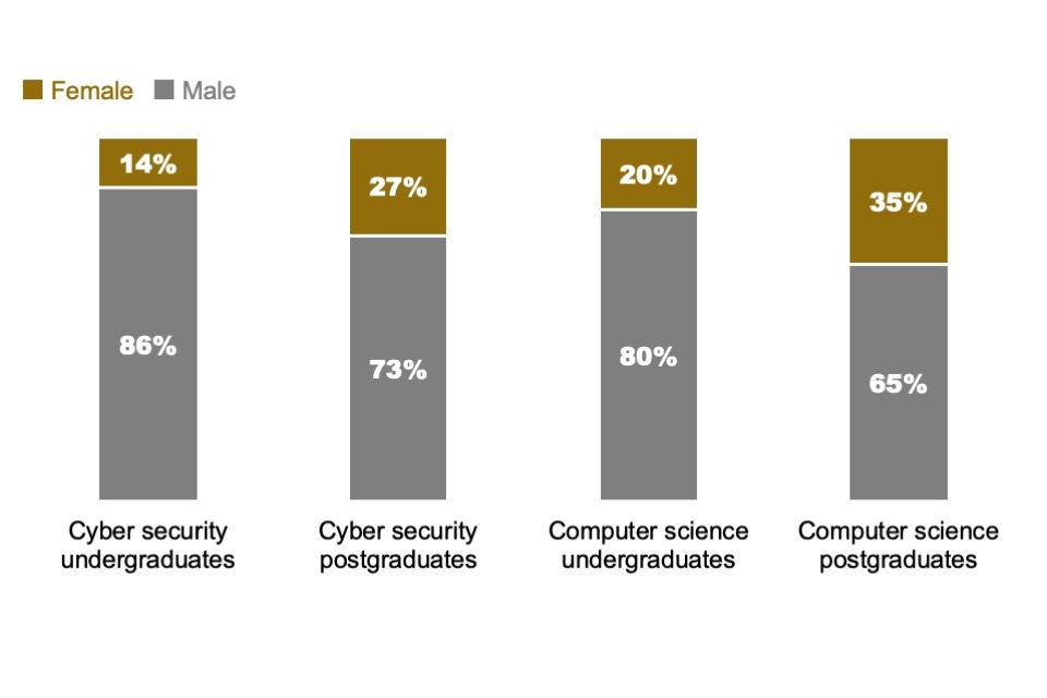Since the 2020 report there has been an increase in the proportion of neurodivergent staff reported by employers, from 9% in 2020 to 16% in the 2025 report, though this may also be attributed to improvements in the identification and reporting of neurodiverse conditions. The gender gap for postgraduate cyber courses also continues to improve year-on-year, with the proportion of female students rising from 21% in academic year 2020/21 to 24% in 2021/22 and 27% in 2022/23, the most recent available data.
