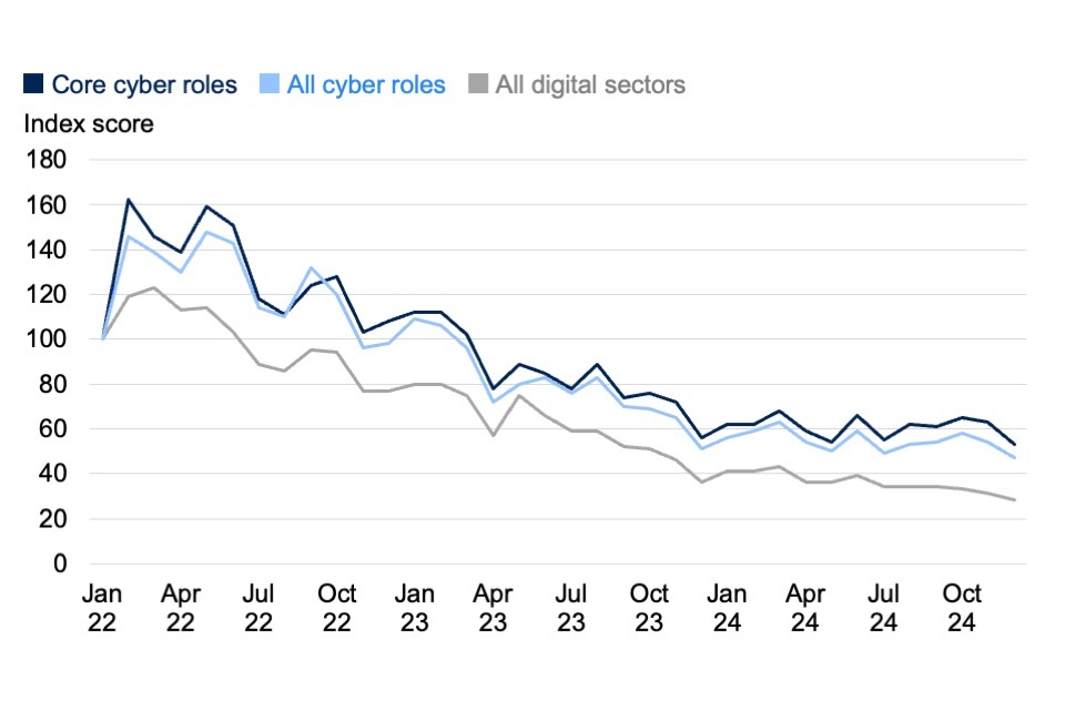 A quarter (26%) of cyber security vacancies were advertised as remote/UK-wide last year, and the London salary premium has narrowed to £11,000 compared to the UK average (London £69,800 vs £58,800 across the regions).