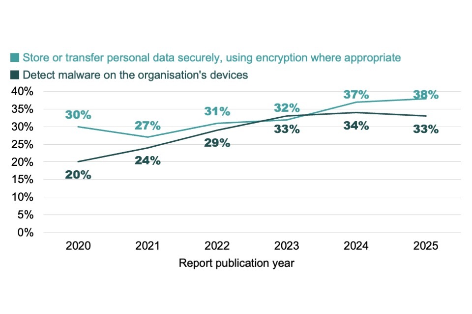Around 3 in 10 businesses (30%) and charities (29%) had gaps in advanced skills including forensic analysis, interpreting malicious code, and penetration testing. As with basic skills, the gap was lower among public sector organisations (21%).