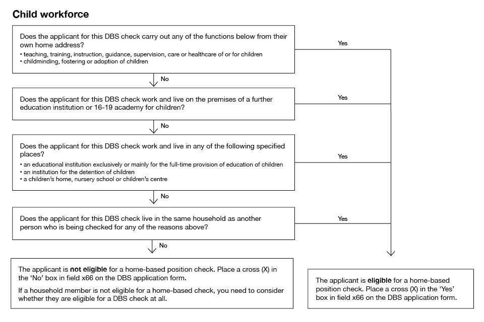 - must be eligible for an enhanced DBS check for work which is listed in the flow chart, and