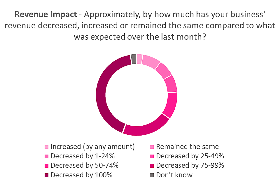 Reviewing overall findings suggests that, as expected, respondents to the DCMS survey report slightly worse impacts on their organisation. This is likely to be due to a greater proportion of YouGov survey responses coming from the Digital cluster, which has been less affected by the coronavirus outbreak.
