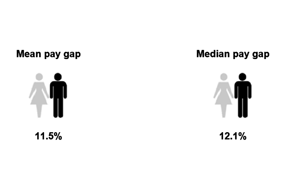 Mean pay gap - 11.5% male; median pay gap 12.1% male