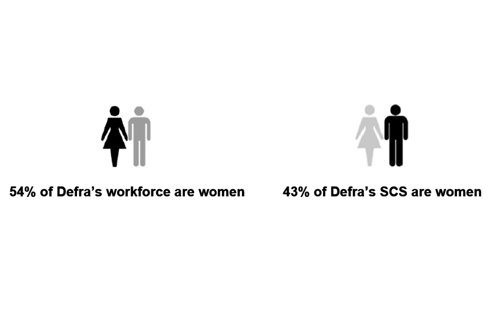 Gender make up of the department: 54% of Defra’s workforce are women, 43% of Defra’s SCS are women