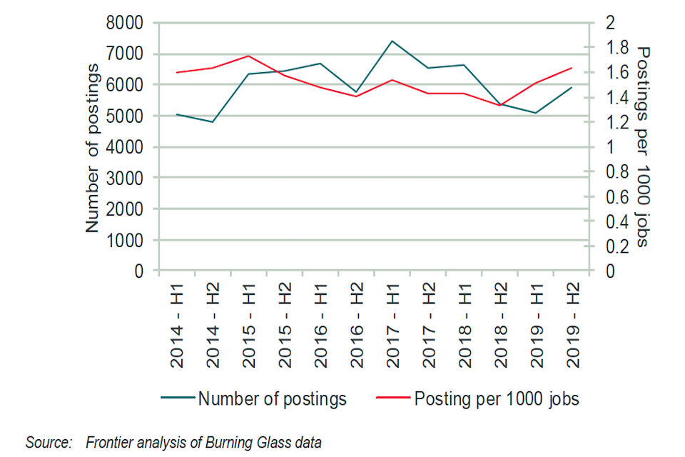 included in each subgroup. We found that over the period 2014-19 71,300 postings called for a