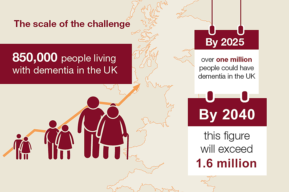 The number of people estimated to be living with dementia globally is 50 million, and it is thought this number will more than treble to 152 million by 2050. In the UK, it is estimated that around 850,000 people have dementia. This progressive condition can have a devastating effect, not just on the person with dementia, but also on families, carers and wider society. There is no cure for dementia and it is the leading cause of death in England.