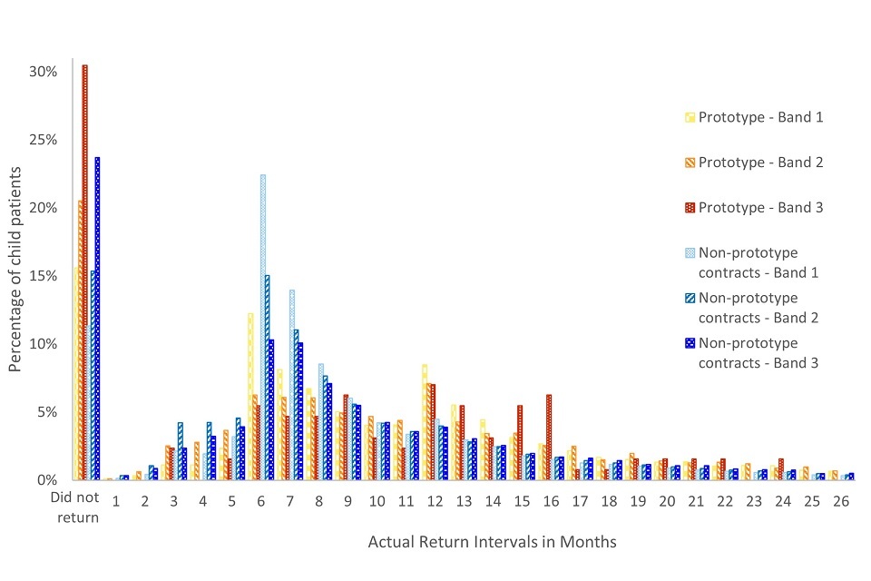 Looking at individual courses of treatment, by financial year 2018 to 2019, prototypes increased the estimated time per course of treatment by 4% while in non-prototype contracts it decreased by 6%. This divergence was statistically significant.