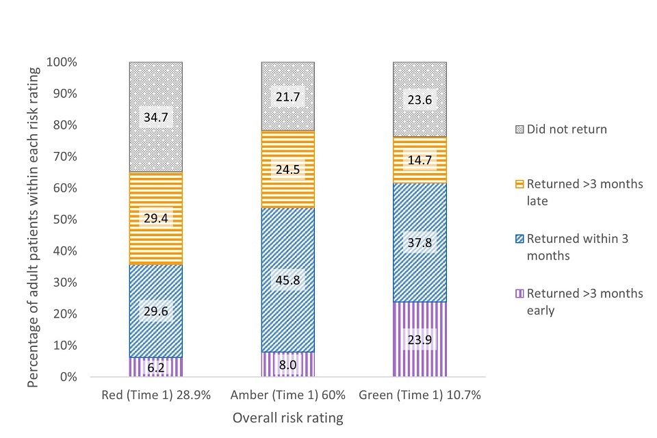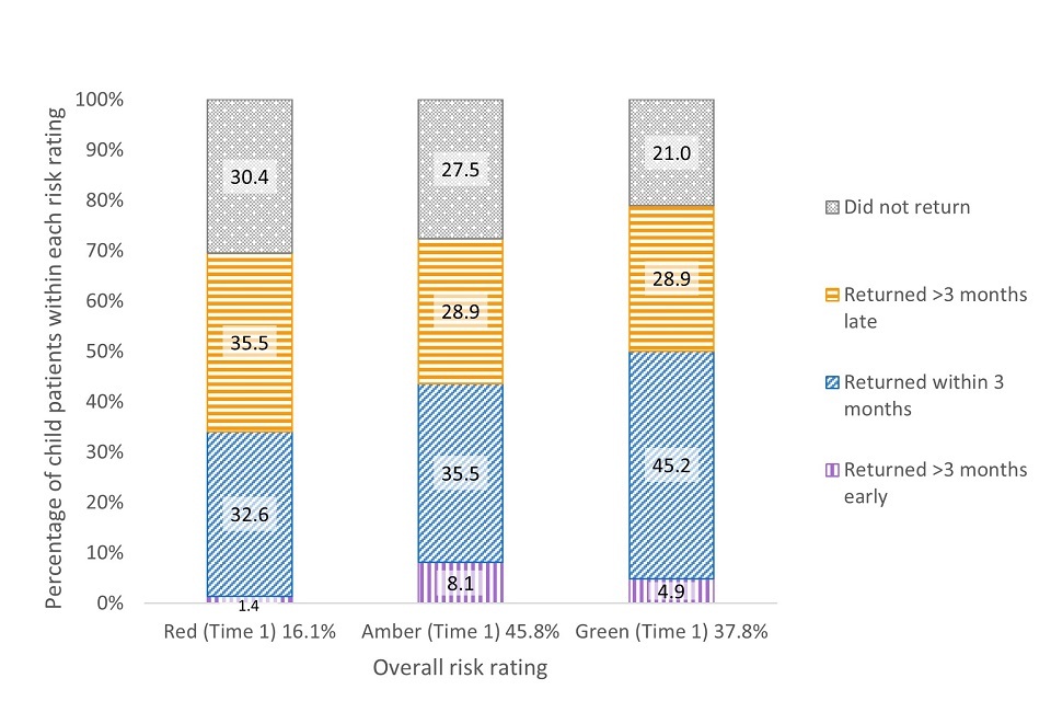 However, approximately one-quarter of both adults and children did not return to their prototype practice for a subsequent review of their oral health. The proportion of those not returning was higher for patients who were initially assessed as having a red (high) in oral health risk status.