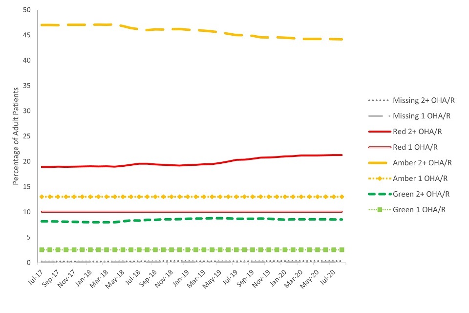 Some patients, particularly those in the red or amber risk group may have benefited from further prevention or advice delivered as interim care (IC, submitted as band 1a) between the OHA and OHR course of treatment. IC visits could be delivered by a dental care professional (hygienist, therapist, extended duty dental nurse or oral health educator) or dentist.