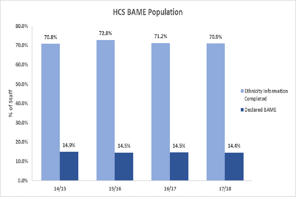 This report focuses on HCS employees. SAIC have the ability to record their ethnicity, disability status, flexible working patterns, caring responsibilities and sexual orientation, but we acknowledge that SAIC colleagues may be less willing to do so than HCS staff. This is due to sensitivities linked to the recording of some characteristics in some countries.