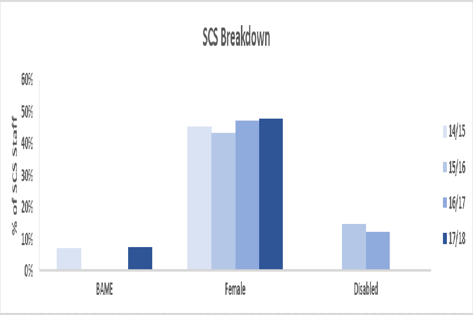 - increasing the number of new SCS from BAME backgrounds to 13.2% and those that declare that they have a disability to 11.9% by 2021