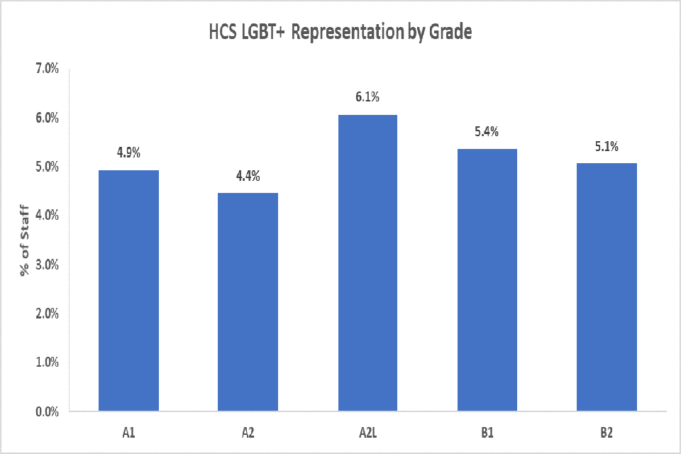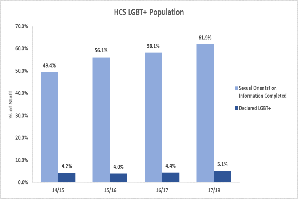 In 2014, the Integrated Household Survey (IHS) stated that 1.6% of people identify as lesbian, gay, bisexual or transsexual. Using this data as a comparator, LGBT representation in DFID, which currently stands at 5.1%, is above average.