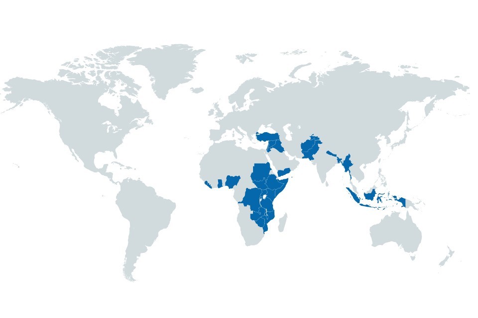 We work in countries across Africa, Asia and the Middle East, many of which are fragile or at risk from fragile neighbors. We also have regional programmes in Africa, Asia and the Caribbean, and development relationships with 3 aid dependent Overseas Territories – St Helena, the Pitcairn Islands and Montserrat.