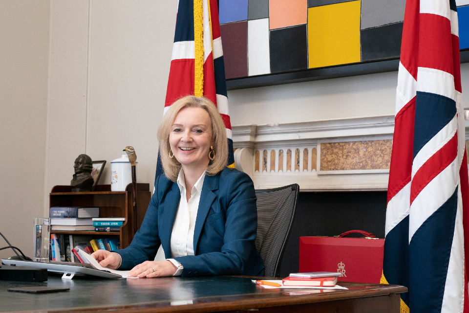 Liz Truss at a desk