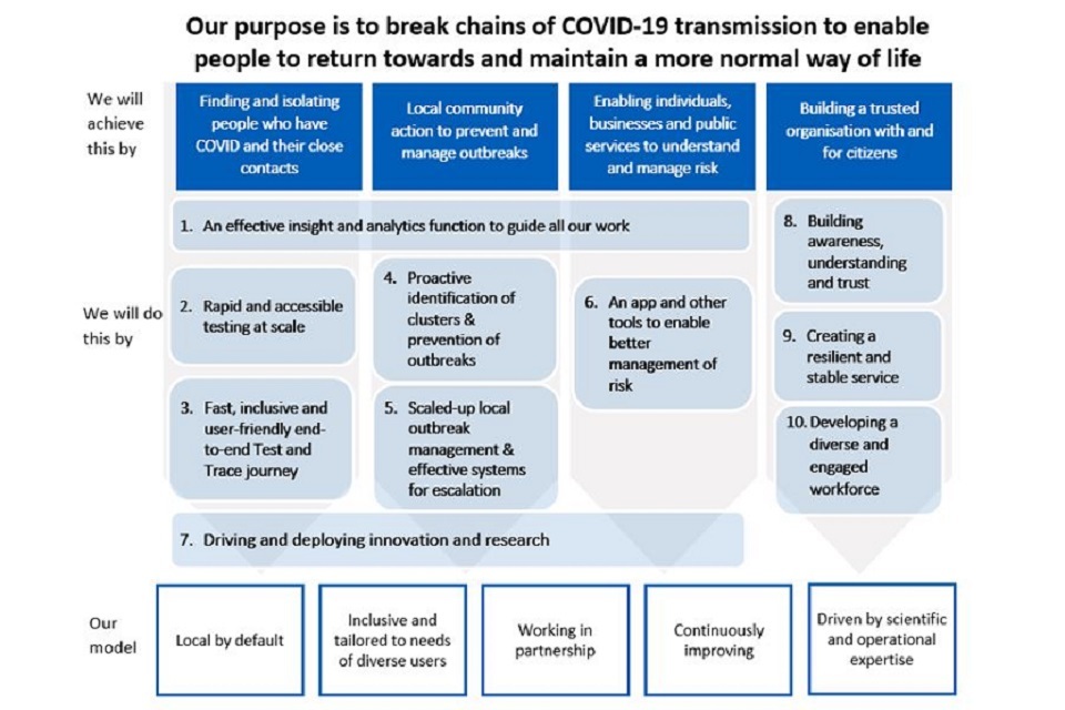 - working with staff across the Test and Trace service and with our key partners to develop clear shared purpose and values, based on the services we provide for the public and our central aim of breaking chains of transmission and helping people return to more normal lives