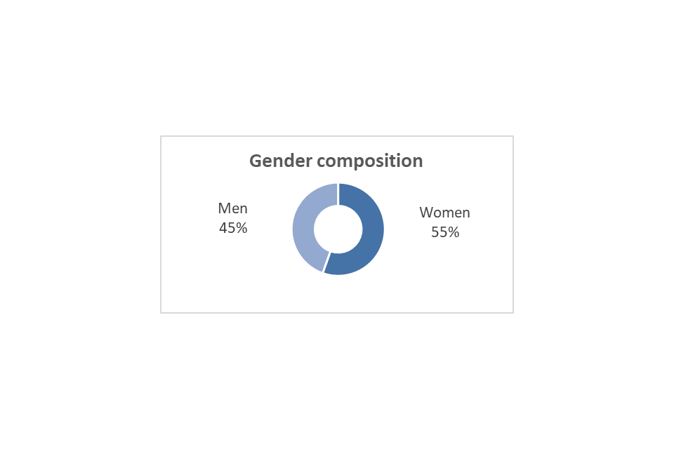 In 2017 to 2018 women made up 55% of DFID’s workforce. Women make up 53.9% of the wider Civil Service so DFID is broadly similar[footnote 1]. There has been very little movement in the gender composition in the last year.