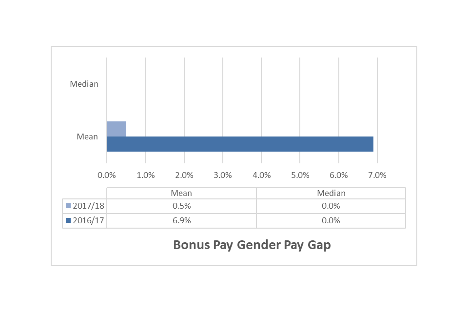 The difference in bonus pay between men and women for the period from 1 April 2017 to 31 March 2018 is shown below. This includes any reward vouchers, in-year awards, and end of year performance awards which were paid during this time period.