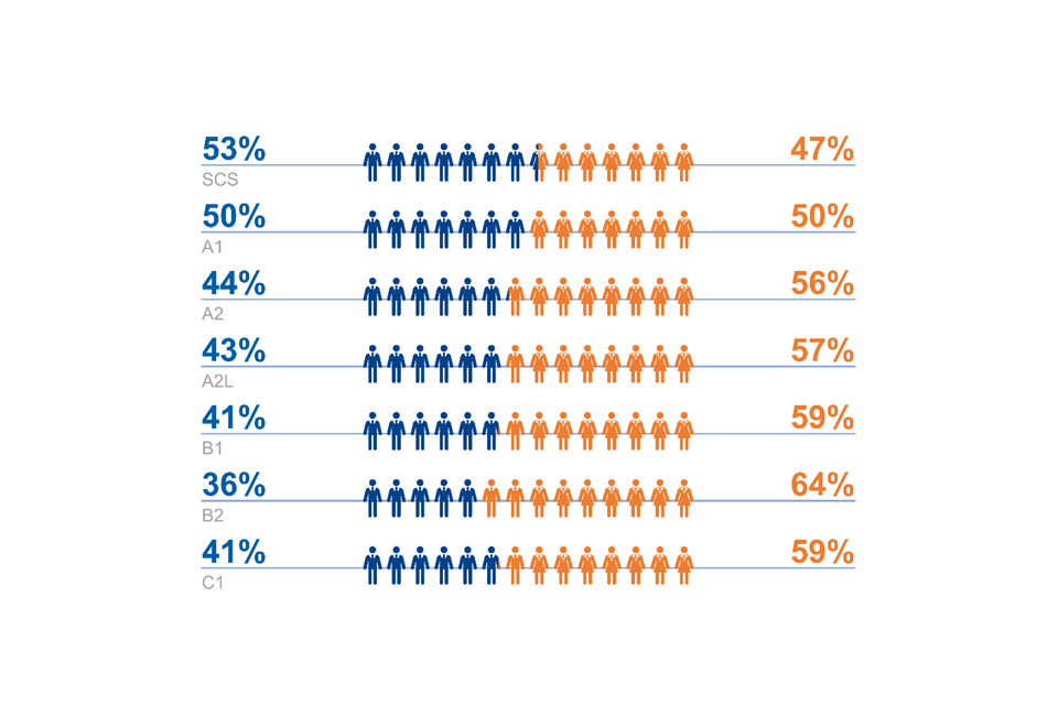 Over the last 4 years, between 2017 and 2020, our analysis has continued to show that DFID’s gender pay gap was a result of the gender balance across our grades, whereby women are represented at senior grades at a lower proportion than the overall proportion of women in DFID. By contrast, women are overrepresented at lower grades compared to men.