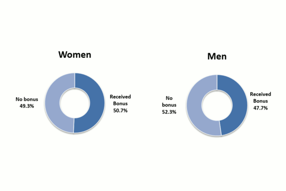 In the same period, 47.7% of men received a bonus payment. Women received more bonuses than men throughout the grades.