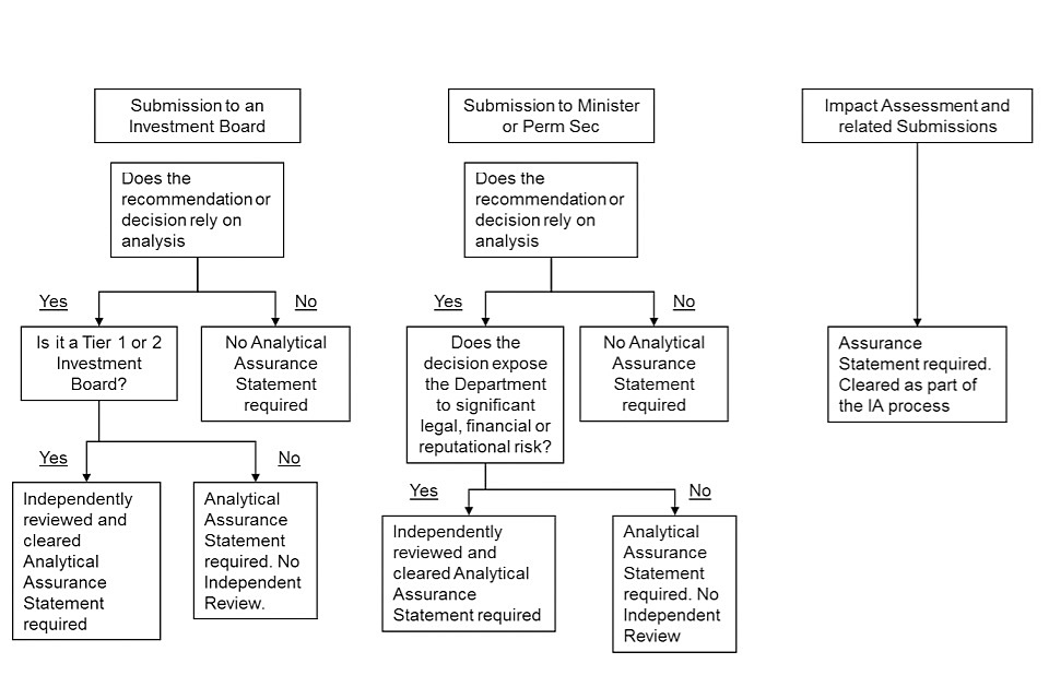 Where analysis forms part of decision making by a Tier 1 or 2 Investment Board or a Minister or the Permanent Secretary and exposes the Department to significant legal, reputational or financial risk, the analytical assurance statement should be independently reviewed and cleared.
